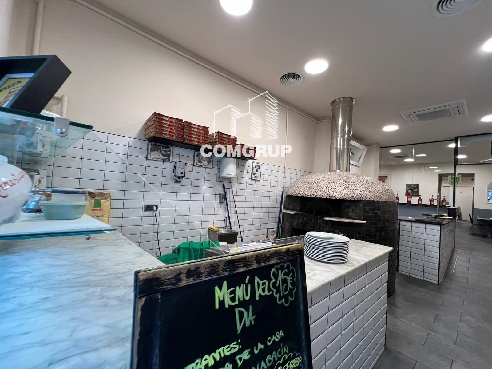 Su fachada amplia y visible destaca por el horno de pizzas a la vista desde el exterior, un elemento muy atractivo que genera interés y refuerza el posicionamiento del negocio. En el interior, el espacio se distribuye de manera funcional: