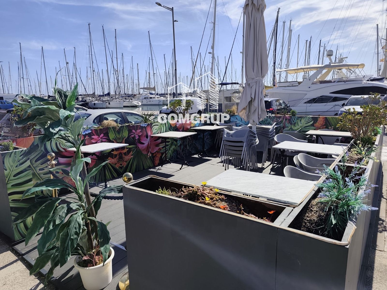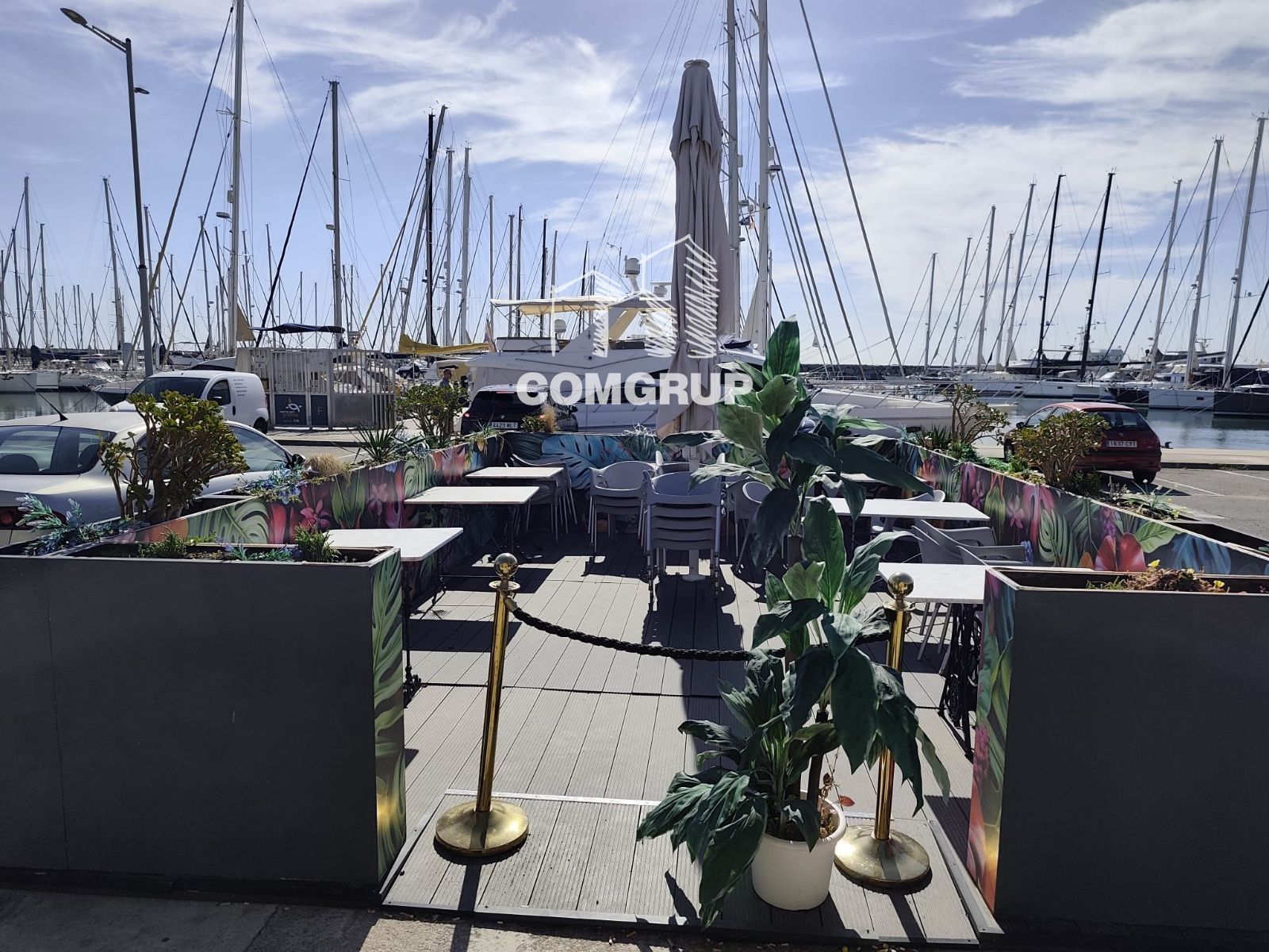 Cuenta con una amplia terraza exterior con vistas privilegiadas al puerto, perfecta para comidas, copas o eventos especiales, aportando un gran valor añadido al negocio.