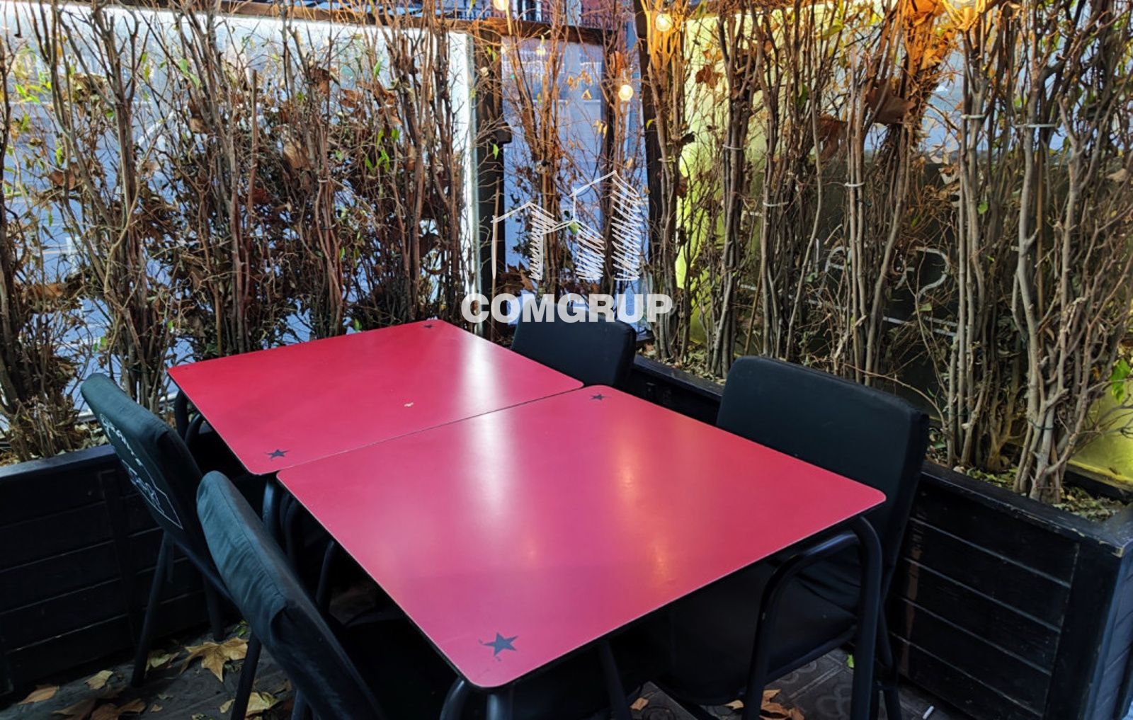 - Terraza exterior con tarima y toldo, 4 mesas para 4 comensales, muy demandada por la zona.